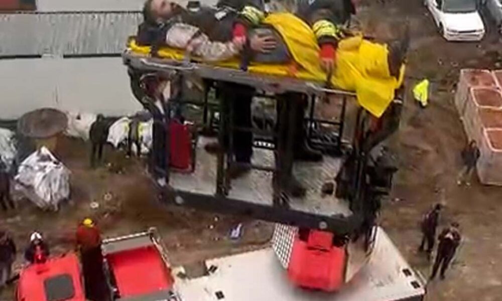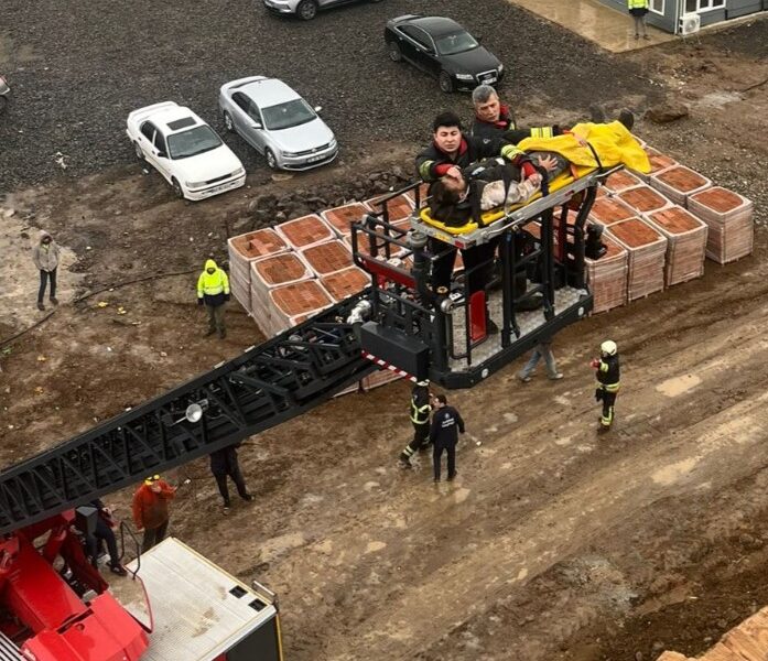 İnşaattan düşen işçi yaralandı; vinçle kurtarma çalışmaları kamerada