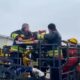 • Samsun'un Bafra ilçesinde işçi Mehmet A. (36), çalıştığı inşaatın 8'inci katından 7'nci katına düştü. Yaralanan işçiyi vinçle kurtarma çalışmaları, cep telefonu kamerasına yansıdı. Fotoğraf: Samsun, (DHA)