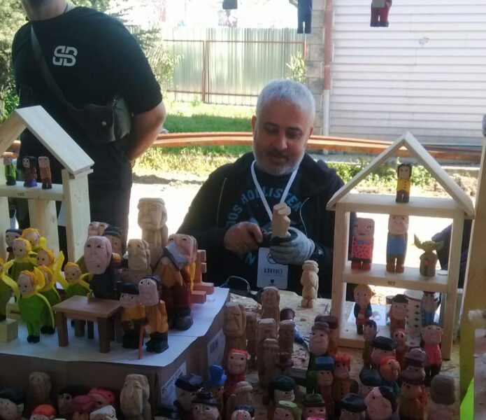İnternetten yapmayı öğrendiği ahşap el yontması figürleri, festivallerde sergiliyor