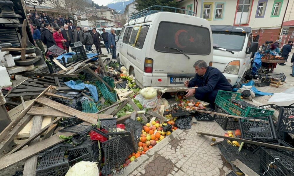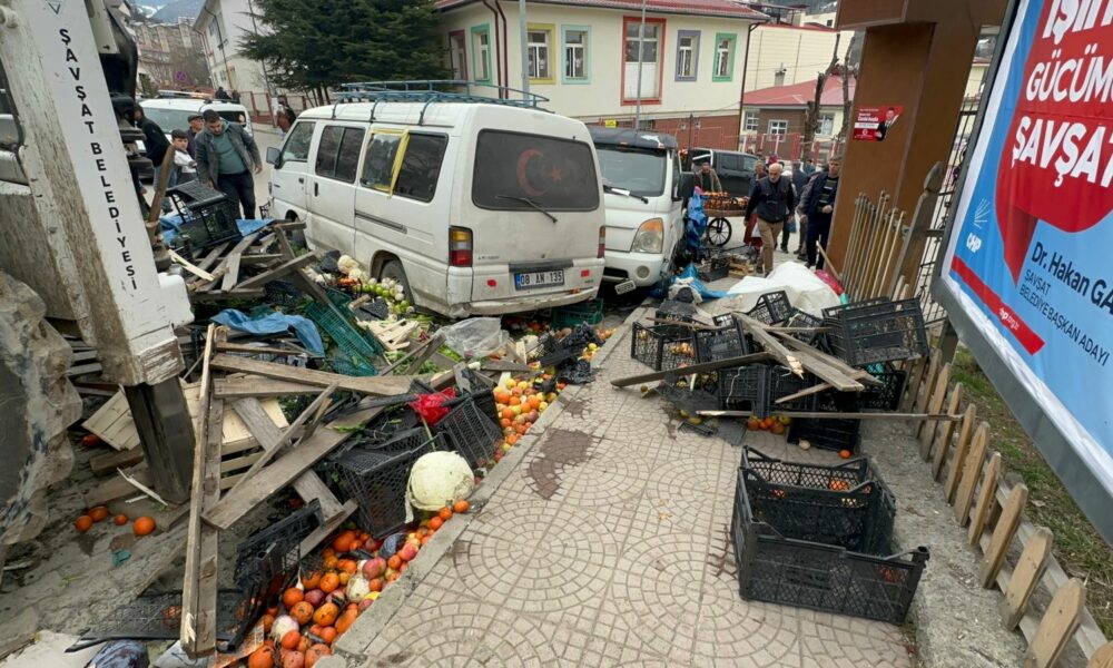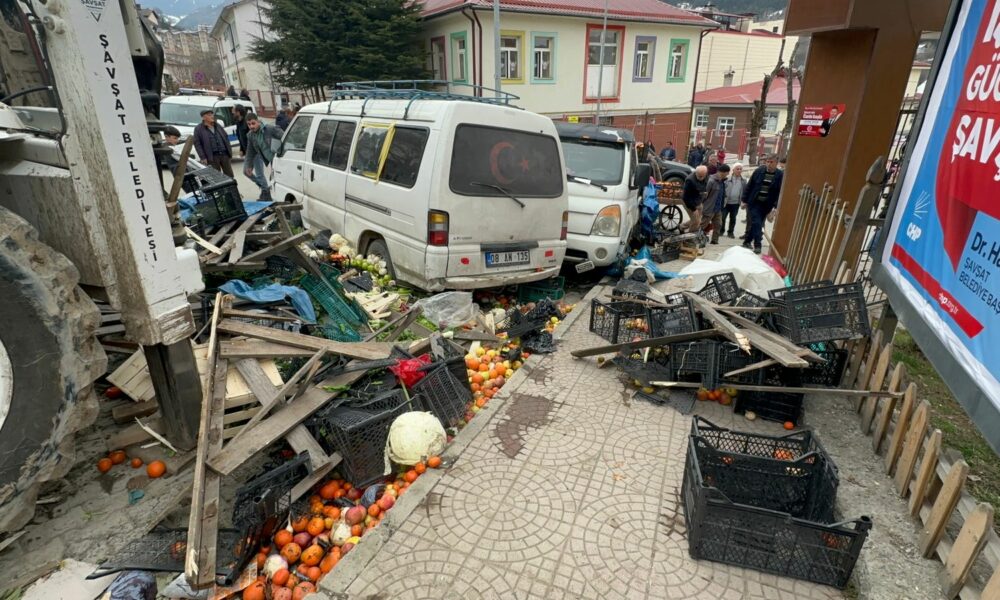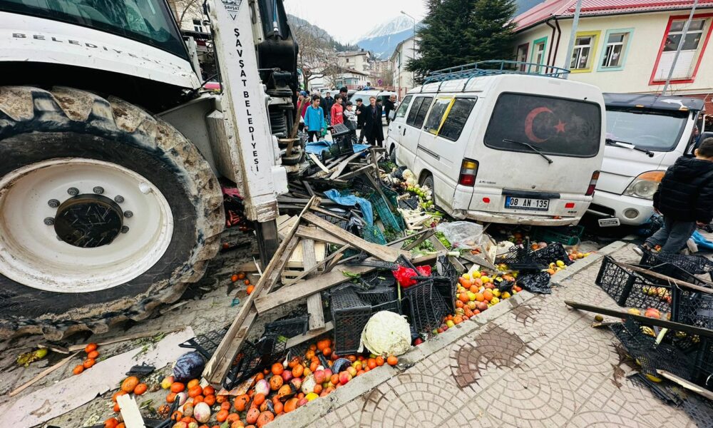 ARTVİN’in Şavşat ilçesinde iş makinesi geri kayarak cadde üzerinde kurulan halk pazarına girdi. İş makinesinin, park halindeki araçlara çarptığı kaza, güvenlik kamerasına yansıdı.Kaza, öğle saatlerinde Şavşat ilçesi Kazım Karabekir Caddesi’nde meydana geldi. Park halindeki ilçe belediyesine ait iş makinesi, aniden geri kaymaya başladı. Hızla ilerleyen iş makinesi, cadde üzerinde kurulu pazara girdi. Yaklaşık 100 metre ilerleyen iş makinesi pazardaki tezgahlar ve park halindeki 5 araca çarptı. Kazada şans eseri yaralanan olmazken, pazar tezgahlarındaki ürünler yola saçıldı, araçlarda hasar meydana geldi. KAZA ANI KAMERADABu arada kaza ve sonrasında yaşananlar, çevredeki bir iş yerinin güvenlik kamerasına yansıdı. Görüntüde; iş makinesinin, pazar alanına dalması ve çevredekilerin de koşarak uzaklaşmaya çalıştığı anlar yer aldı.‘KİMSENİN BURNU BİLE KANAMADI’Kaza sonrası pazar yerinde incelemelerde bulunan Şavşat Belediye Başkanı Nihat Acar, “Bu tür şeyler olasıdır. Vatandaşımızın ve bizim maddi hasarımız olmasına rağmen sevindirici yanı can kaybının olmayışıdır. Şükürler olsun bir acı yaşanmadı. Maddi hasar sonrasında yerine gelir ama can kaybı yerine gelmez. Kimsenin burnu bile kanamadan atlatılmış olay” dedi. Kazayla ilgili inceleme başlatıldı.