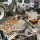İş makinesi pazara daldı; kaza kamerada