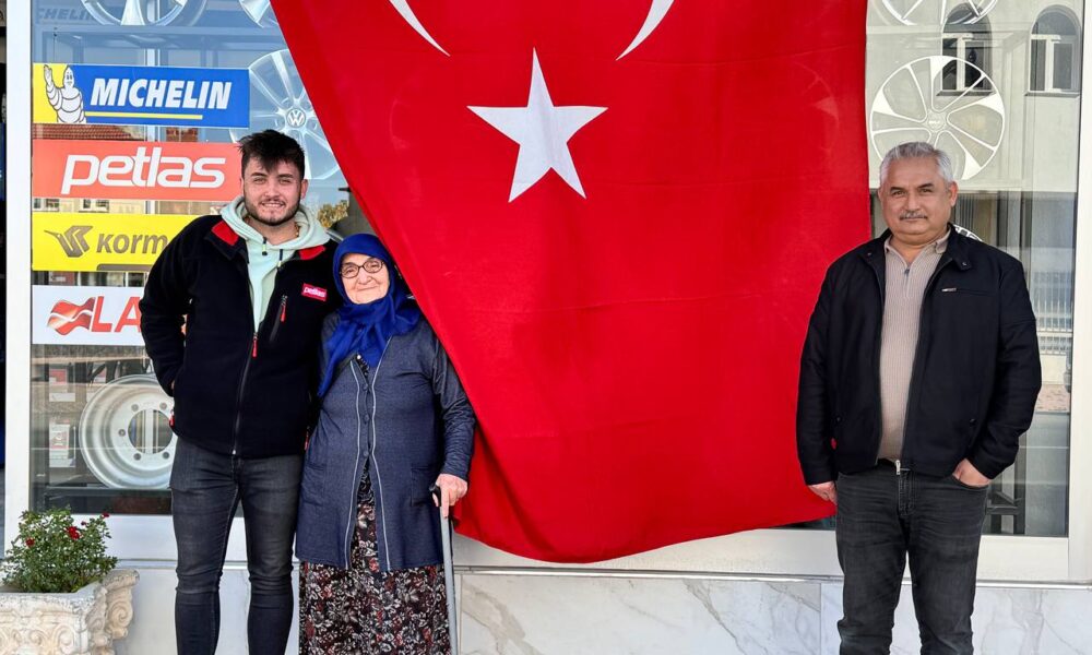 Aksarayda 29 Ekim Cumhuriyet Bayramı ve Türkiye Cumhuriyetinin kuruluşunun 101inci yıl dönümü, düzenlenen törenlerle coşkuyla kutlandı. Bayram kutlamaları dolayısıyla kentin her yerine Türk bayrakları asıldı. Ortaköy ilçesinde elinde bastonuyla kaldırımda yürüyen Fadimana Altın, komşusu lastikçi Kaan Demiraslanın iş yerinin önüne astığı bayrağı görüp, öptü. Demiraslan da Fadimana Altının elini öptü. O anlar, iş yerinin güvenlik kamerasına yansıdı.