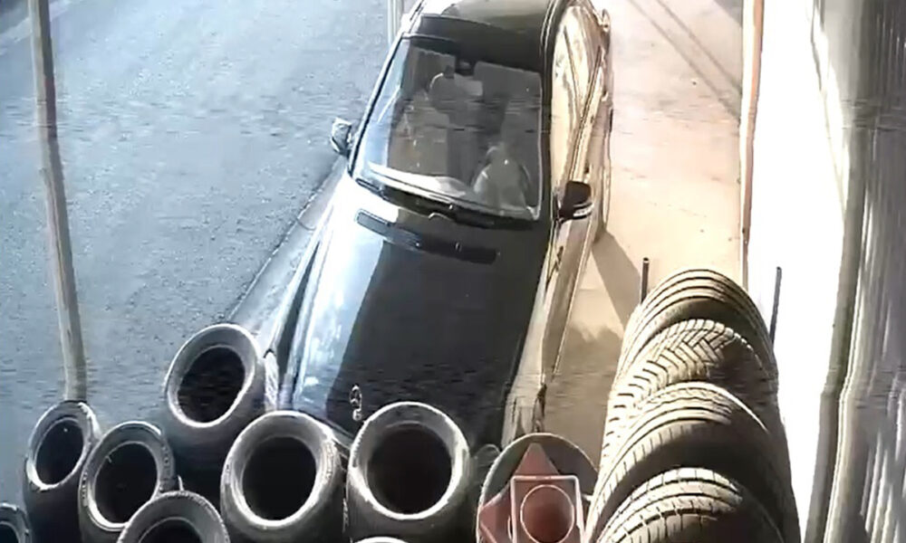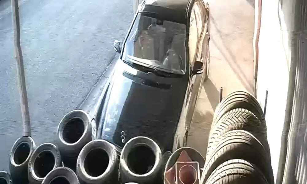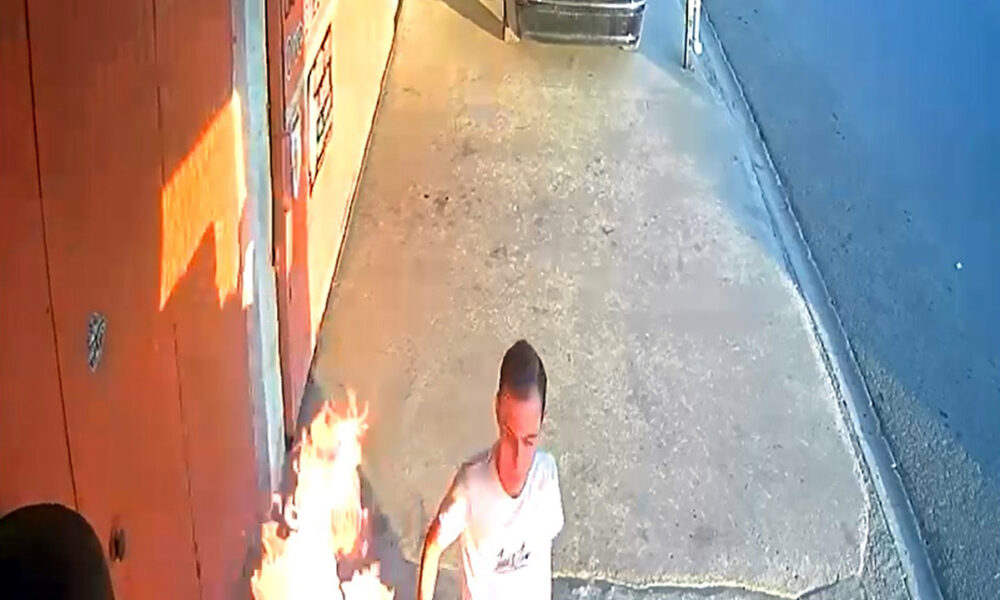 İş yerinin önündeki oto lastiklerini ateşe verdi; o anlar kamerada