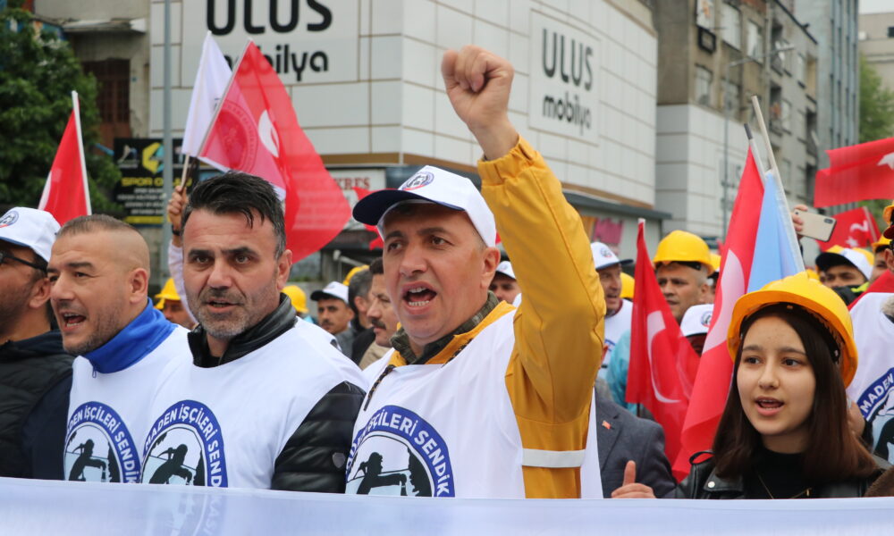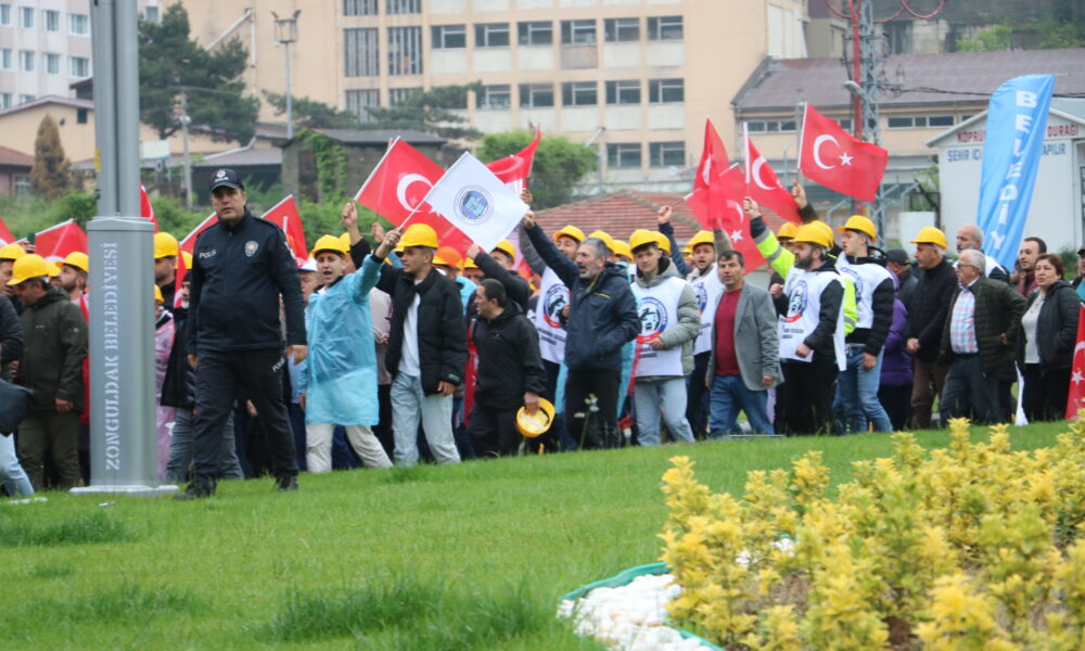İşçi kenti olarak anılan Zonguldakta, meslek örgütleri, siyasi parti ve sivil toplum kuruluşları 1 Mayıs Emek ve Dayanışma Günü kutlamaları için İstasyon Caddesinde bir araya geldi. Polis ekiplerinin güvenlik önlemleri ve üst aramasıyla katılımcılar alana alındı. Kortej düzeni oluşturan grupların en önünde Genel Maden İşçileri Sendikasına (GMİS) üye madenciler yer aldı. Madencilerin aile üyeleri ve yakınları da onlara yürüyüşte eşlik etti. CHP Genel Başkan Yardımcısı Deniz Yavuzyılmaz ve Milletvekili Eylem Ertuğ Ertuğrul ile Belediye Başkanı Tahsin Erdem de yürüyüşe katıldı. Yürüyüş sırasında madencilerin ilk kadın başkanı olarak anılan GMİS Merkez Servisleri Şube Başkanı Aysel Kocabaş en önde yürüdü. Yürüyüşte zaman zaman madenciler, baretlerini yere vurarak “Madenci feneri sönmeyecek” sloganları attı.
