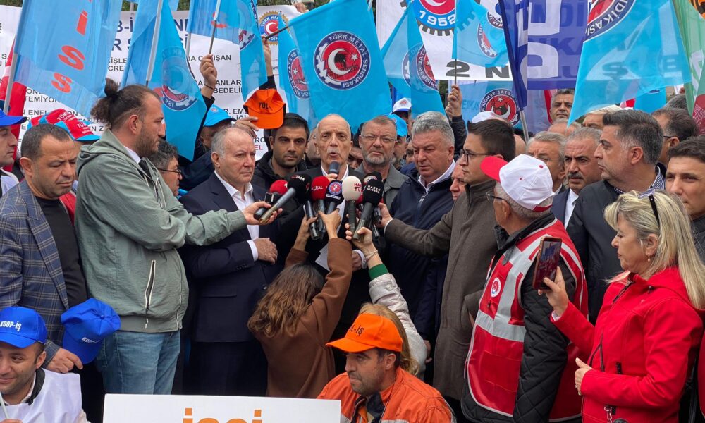Türk-İş Genel Başkanı Ergün Atalay, bugüne kadar problemleri meydanlarda anlattıklarını belirterek, “Maalesef duyması gerekenler, duymakta zorluk çekiyor. Bugün işçilerin enflasyondan dolayı ücretlerinin eridiğini konuşacağız. Asgari ücretlinin geçinemediğini konuşacağız. Emeklinin zor durumda olduğunu konuşacağız. Bizim ülkemizde öyle bir vergi sistemi var ki işçi, ocak ayında aldığını nisan ayında almıyor, nisan ayında aldığını temmuzda almıyor, temmuzda aldığını da aralıkta almıyor. Kısa ve özü şu; işçi 12 ay çalışıyor, 1,5 ayını vergiye veriyor. Dünyanın hiçbir yerinde böyle bir vergi sistemi yok. Sayın Mehmet Şimşek bunları ne kadar biliyor, ne kadar anlıyor, ne kadar görüyor, ne kadar duyuyor bilmiyoruz” dedi.