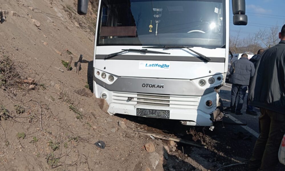 İşçi servisi ile otomobil çarpışt: 13 yaralı