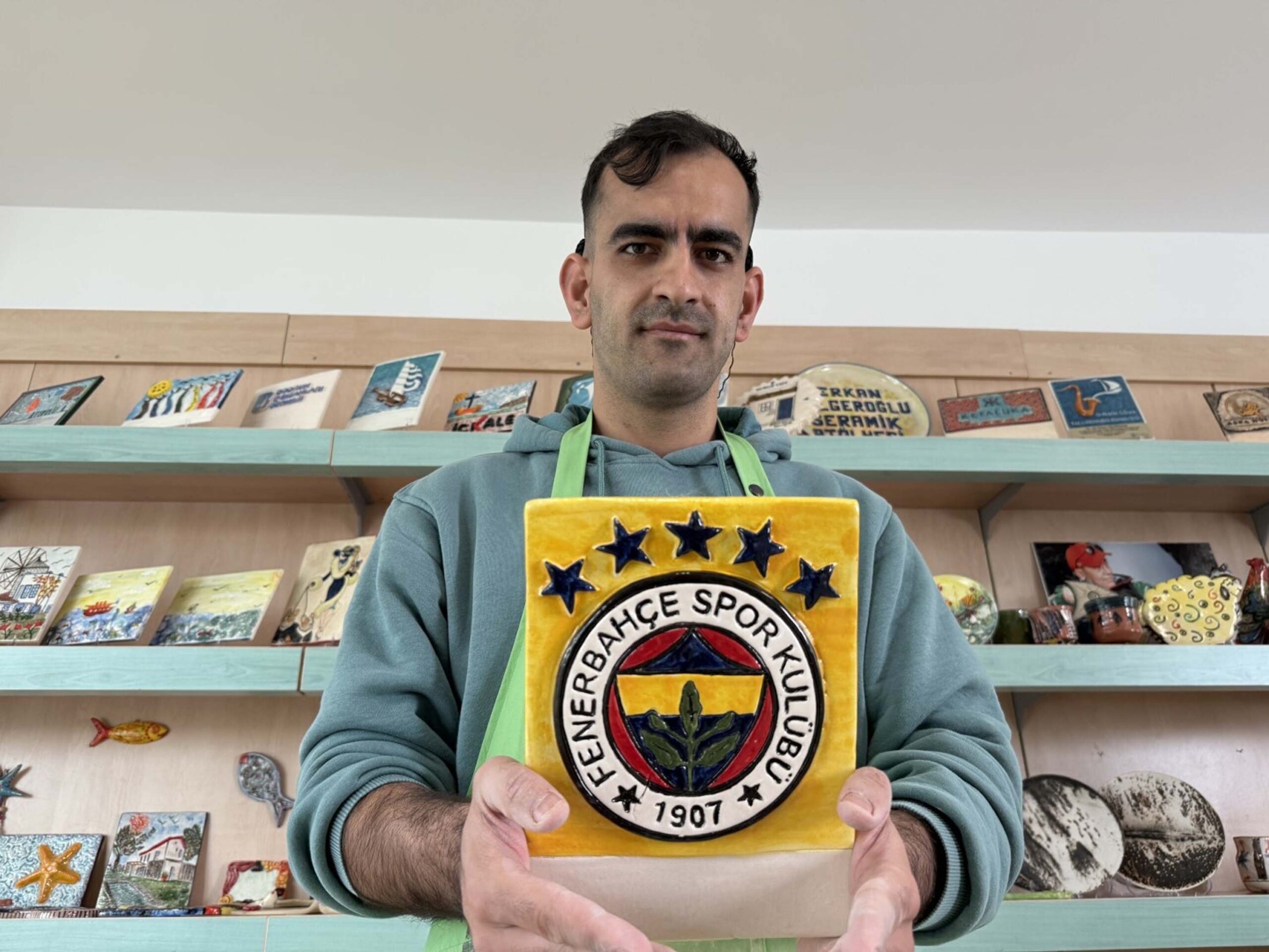 Doğuştan işitme engelli Rıfat Can Şişman (27), spor ve sanatla engelleri aştı. Birçok spor dalı ile ilgilenip, seramik sanatında usta olan Şişman, En büyük hayallerimden biri sergi açmak dedi. Fotoğraf: Fırat AKAY/Bodrum (Muğla),(DHA)