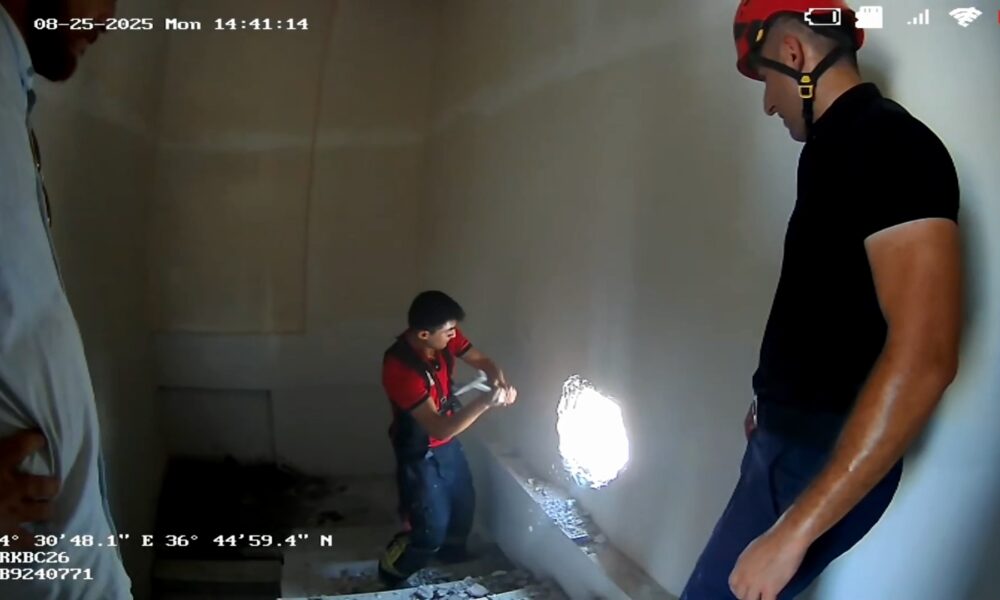 İskelede mahsur kalan inşaat işçileri, duvar kırılarak kurtarıldı