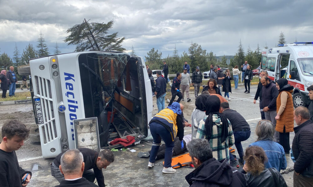 Isparta’da yolcu midibüsü devrildi: 16 yaralı / Ek fotoğraflar