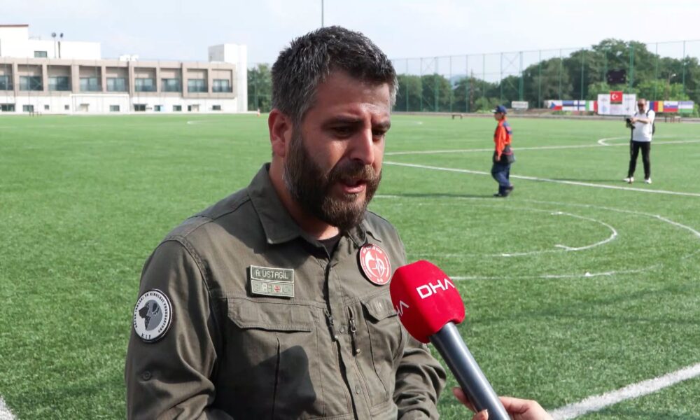 Arama kurtarma Türk Milli takımı kaptanı Alper Ustagil, “3 sınav parkurumuz var. Bir tanesi enkaz parkuru. Enkaz parkurunu 6 Şubattan esinlenerek kaybettiğimiz insanlarımızın da anısına oradaki çalıştığımız bir binaya benzetmeye çalıştık. Söylediğim gibi bu senaryoyu da ne yazık ki acı tecrübemizi yansıtmak ve kayıplarımızı anmak gerçekleştirdik. Bir de orman senaryomuz var. 50 dönümlük bir kayıp araba senaryomuz var. İz takibi senaryomuz var. Stadyumda gördüğünüz senaryolarda itaat ve çeviklik üzerine. Şu anda sahaya ve iklime adaptasyon antrenmanı parkur adaptasyon antrenmanı var. Sınavda uygulanacak olan itaat ve çeviklik parkurunda yarışmacılar adapte olabilmek için birebir uygulayarak adımlarını atma, dönüş yerlerini planlama gibi teknik detayları çalışıyorlar” dedi.