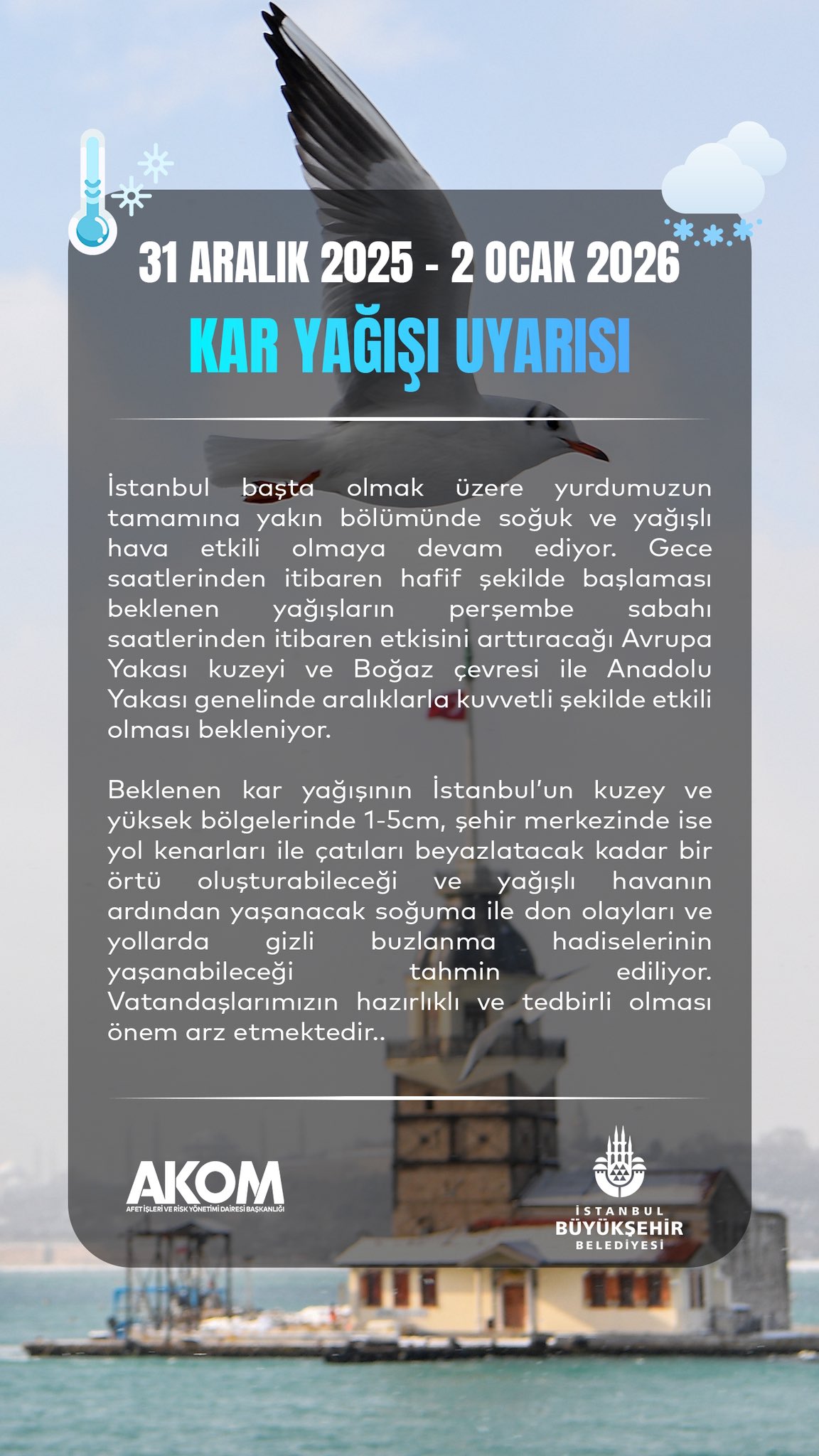 İstanbul – AKOM’dan İstanbul için kar yağışı uyarısı