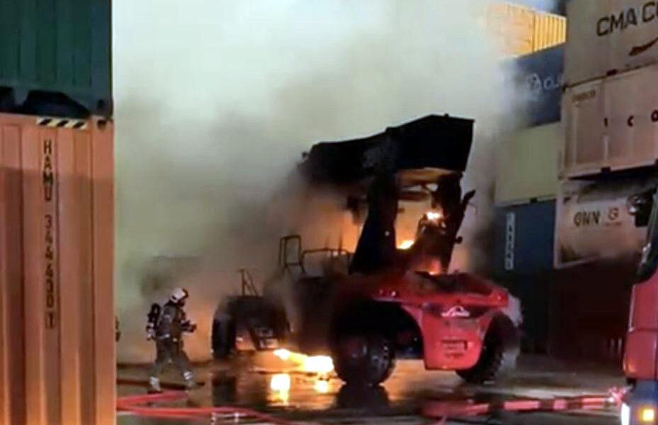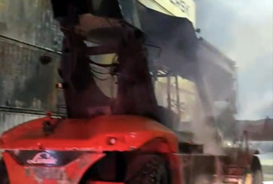 İstanbul – Ambarlı Limanı’nda yanan iş makinesi kullanılamaz hale geldi