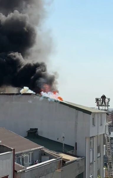 İstanbul- Arnavutköy’de 5 katlı binanın çatısında çıkan yangın söndürüldü