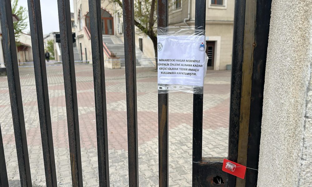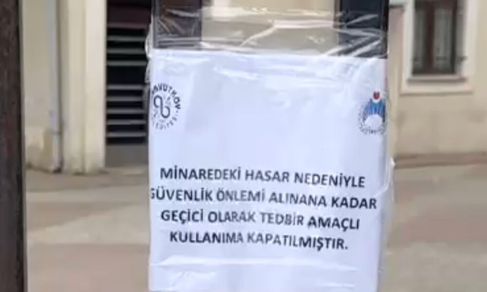 İstanbul- Arnavutköy’de depremin ardından minaresi hasar gören camii mühürlendi