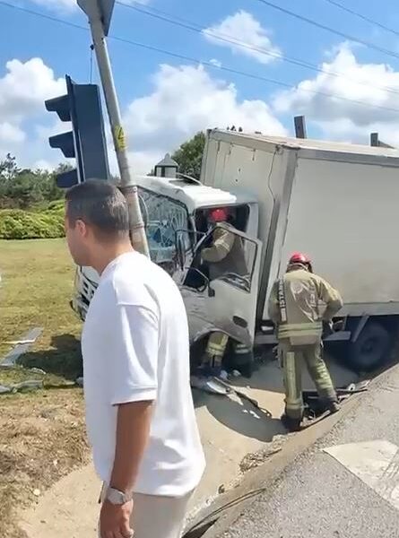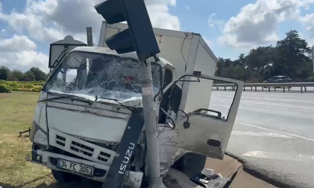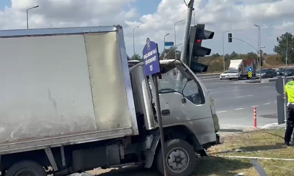 İstanbul- Arnavutköy’de kamyonet önce reklam panolarına ardından trafik ışıklarına çarptı