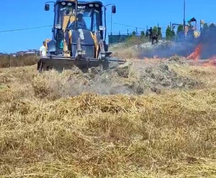 İstanbul – Arnavutköy’de tarlada çıkan yangına, vatandaşlar hortumla müdahale etti