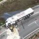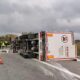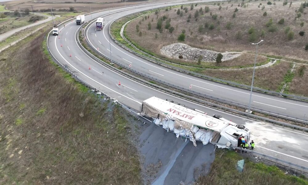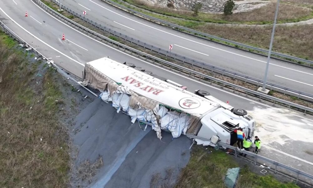 İstanbul – Arnavutköy’de virajı alamayan TIR devrildi; şoför ağır yaralandı / Havadan görüntüler