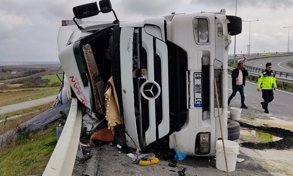 Kaza, saat 13.00 sıralarında Arnavutköy Kuzey Marmara Otoyolu Yassıören gişeleri mevkiinde meydana geldi. Edinilen bilgiye göre, otoyola bağlanmak üzere seyir halinde olan 31 AUR 81 plakalı TIR, viraja girdiği sırada henüz bilinmeyen bir nedenle şoförünün direksiyon hakimiyetini kaybetmesi sonucu devrildi. Kazada TIR şoförü araç içinde sıkışarak ağır yaralandı. İhbar üzerine olay yerine jandarma, sağlık ve itfaiye ekipleri sevk edildi. İtfaiye ekipleri yaralı sürücüyü bulunduğu yerden çıkararak sağlık ekiplerine teslim etti. Yaralı olay yerindeki ilk müdahalesinin ardından ambulansla hastaneye kaldırıldı.Kaza nedeniyle trafik bir süre tek şeritten kontrollü olarak sağlandı. TIR’da plastik hammadde yüklü olduğu öğrenildi.
