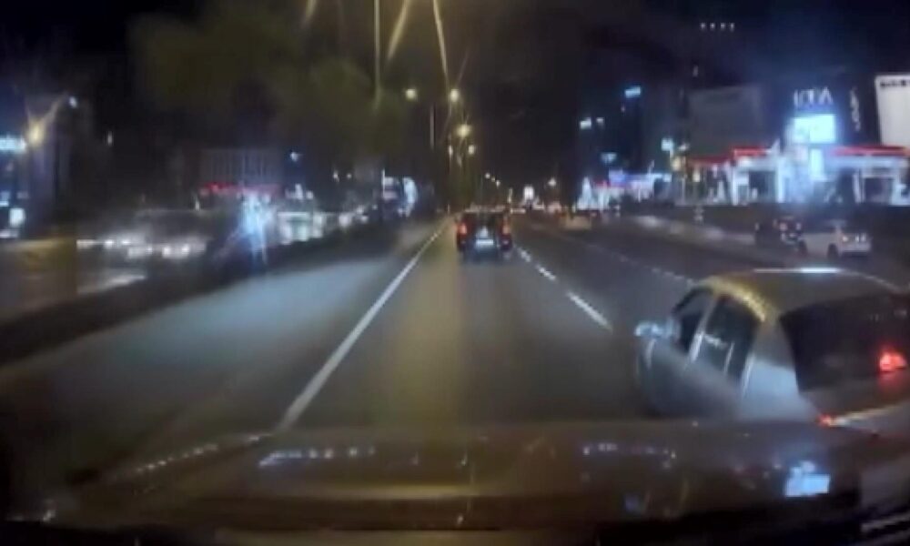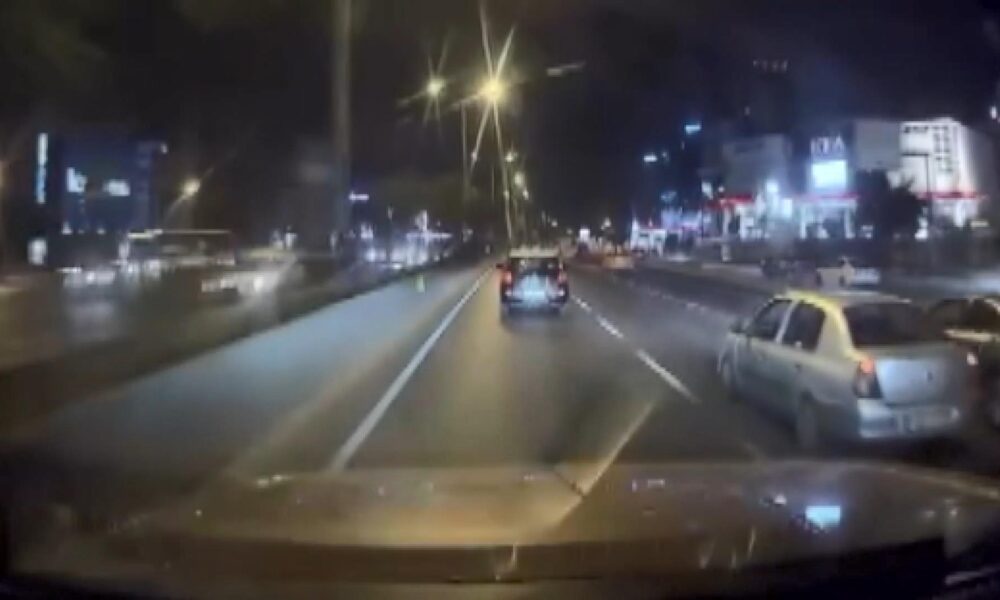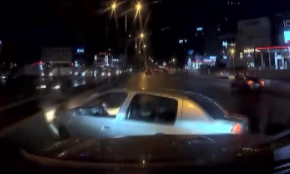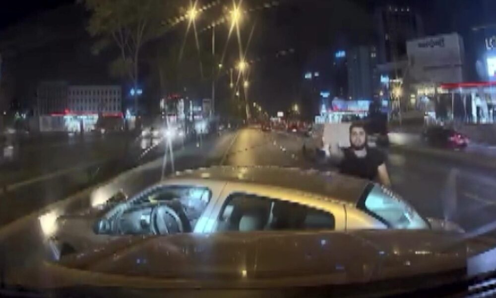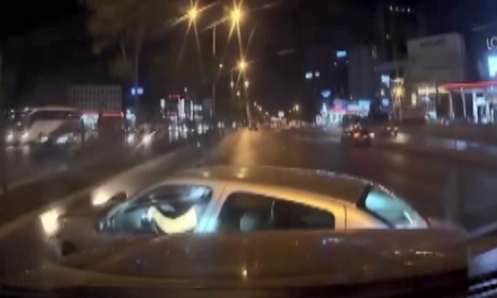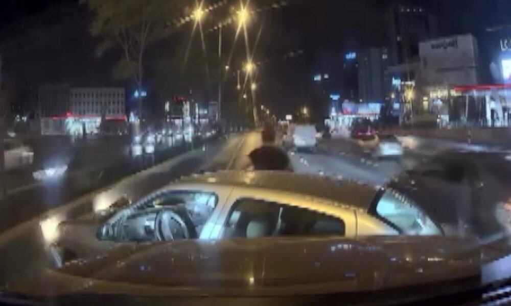 Sürücülerden biri en sağ şeride geçti. Ardından da orta şeritte ilerleyen araca yakınlaştı. Orta şeritte ilerleyen otomobil sürücüsü direksiyon hakimiyetini kaybetti. Orta şeritten bir anda sol şeride geçen otomobil, yan döndü ardından da hızla bariyerlere vurdu. Aynı yönde seyir halinde olan ve yaşananları kaydeden başka bir araç sol şeritte yan dönen otomobile çarptı. Kazaya neden olan sürücü hızla olay yerinden kaçarken, kaza anı araç kamerasına yansıdı.