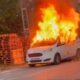 İstanbul-Ataşehir’de hafif ticari araç alev alev yandı