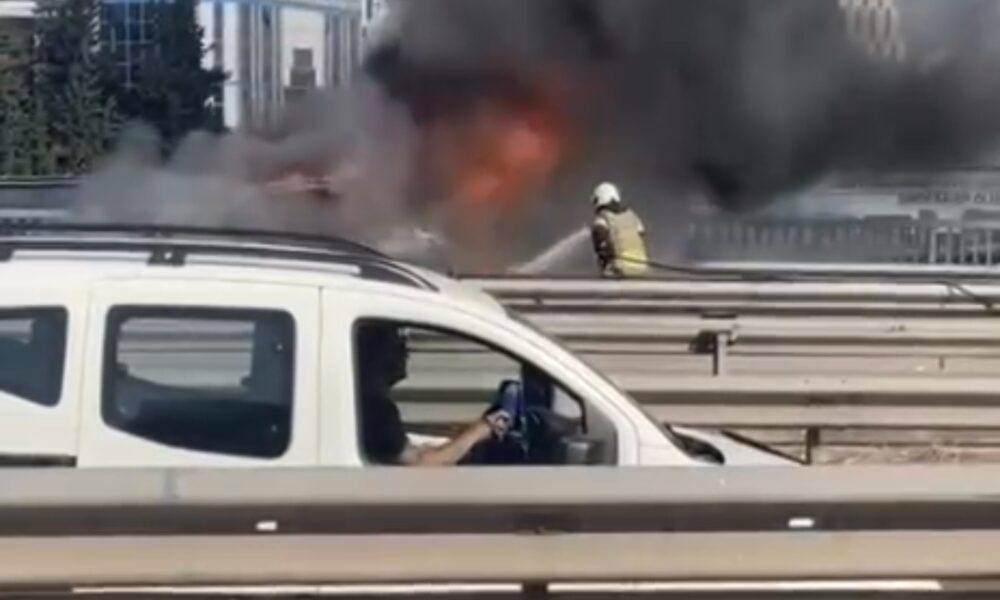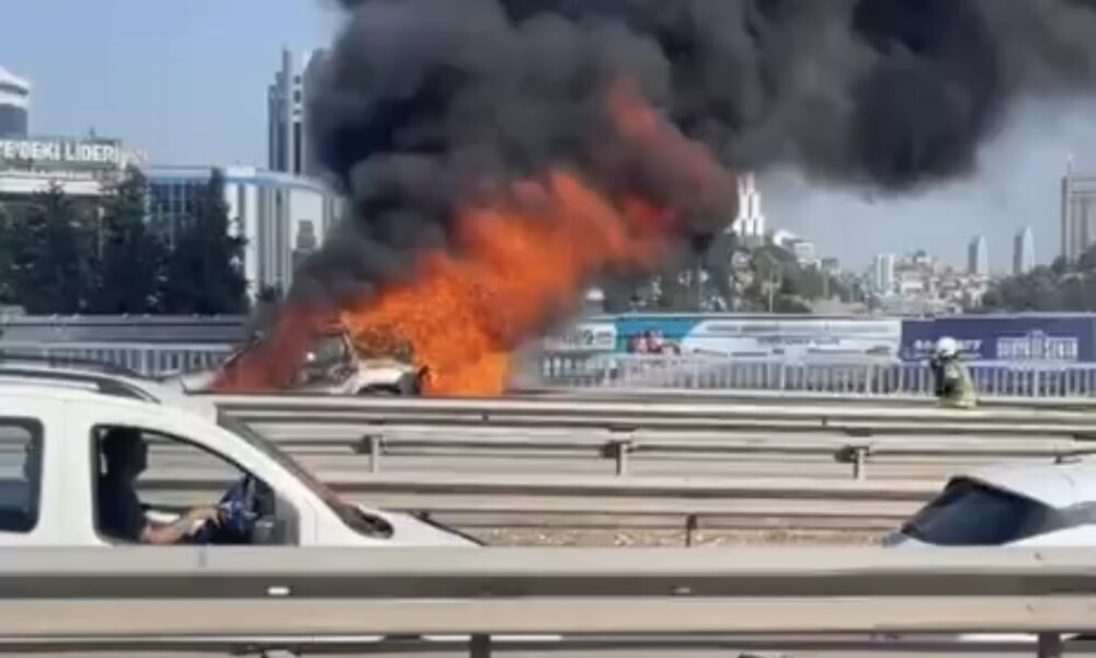 İstanbul- Ataşehir’de hafif ticari araç alev alev yandı
