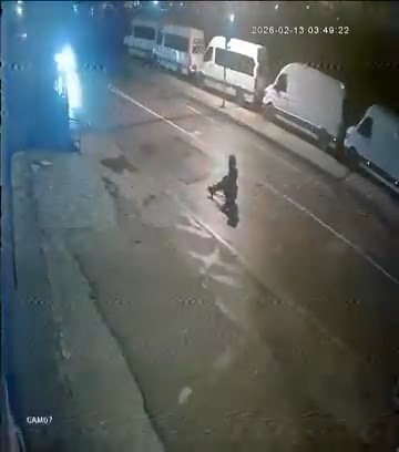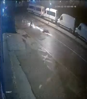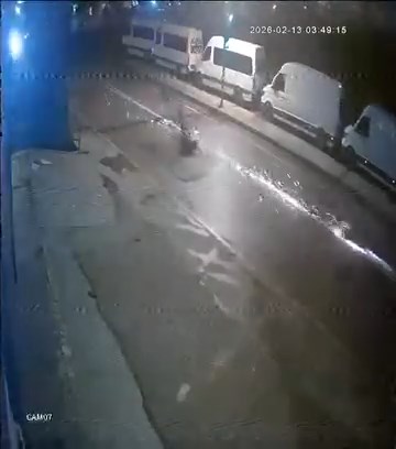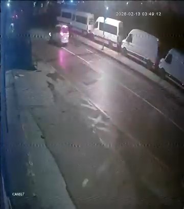 Kaza anı çevredeki bir iş yerinin güvenlik kamerası tarafından görüntülendi. Görüntülerde hafif ticari araç sürücüsü sola dönüş yaptığı sırada karşıdan gelen motosikletle çarpışması ve sürücünün yola savrulduğu görülüyor.