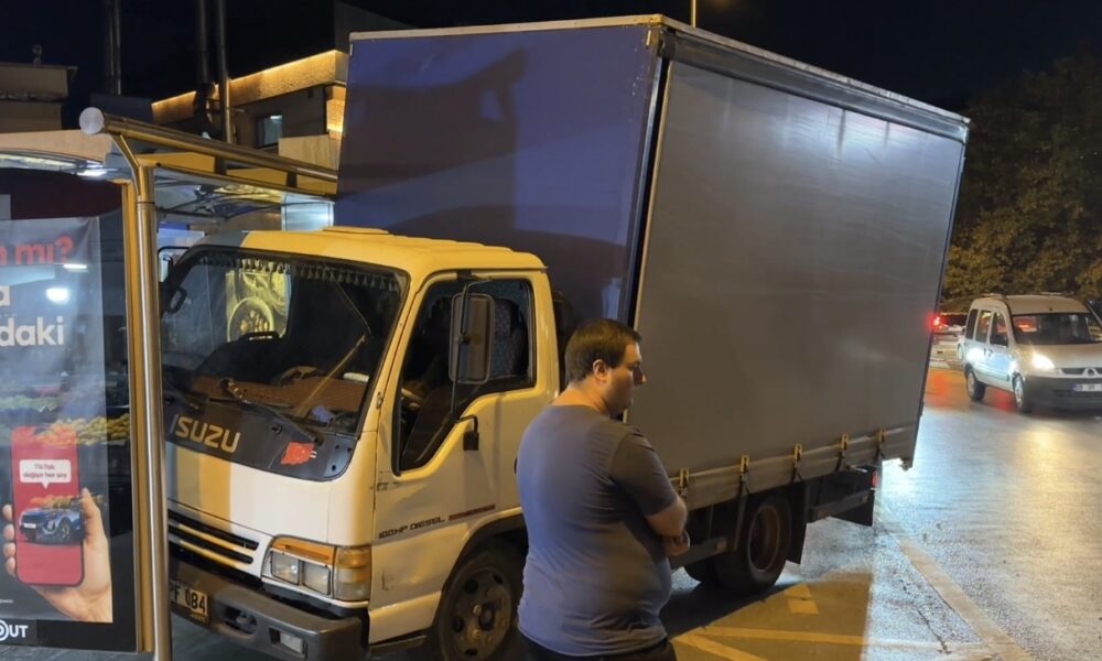 Görüntülerde, kamyonetin geri kayarak minibüse çarptığı, ardından yavaşça ilerleyip durağa girdiği görüldü. O sırada durakta bulunan bir kedi kaçarken, caddede yürüyen vatandaşlar ise panik yaşadı.