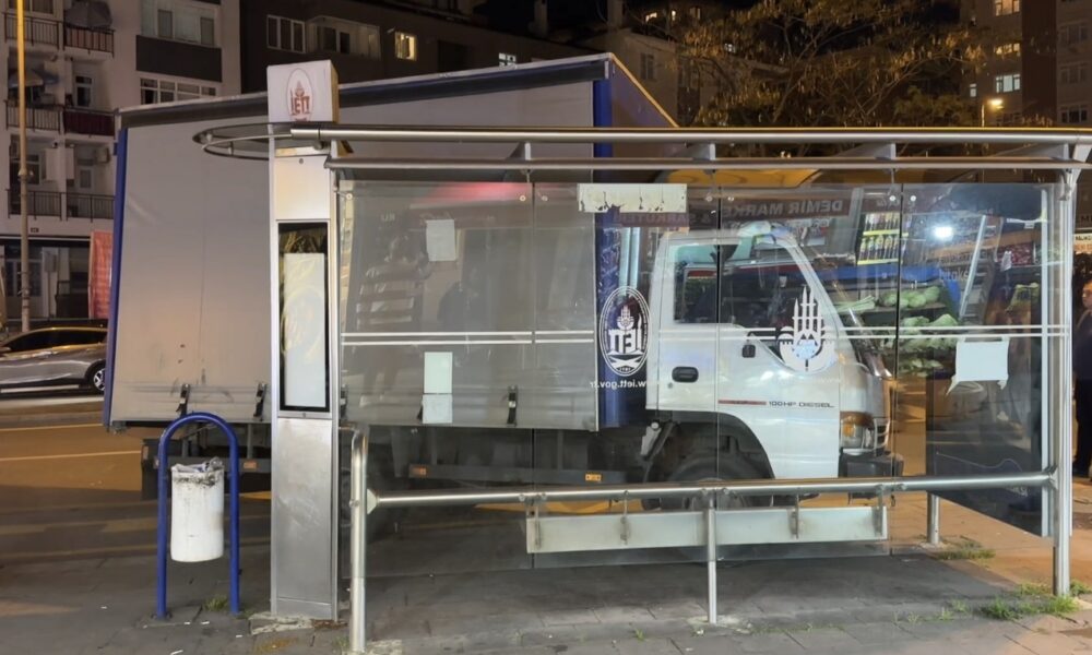 İstanbul- Ataşehir’de kamyonetin otobüs durağına daldığı anlar kamerada