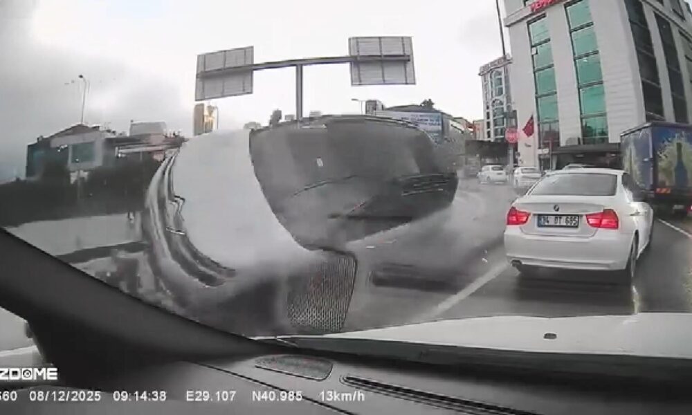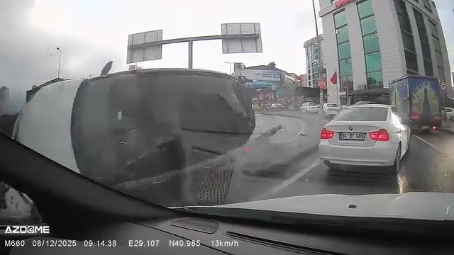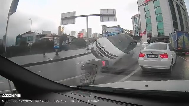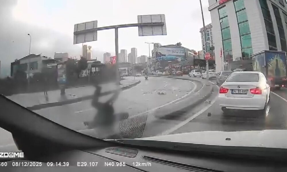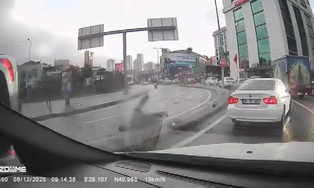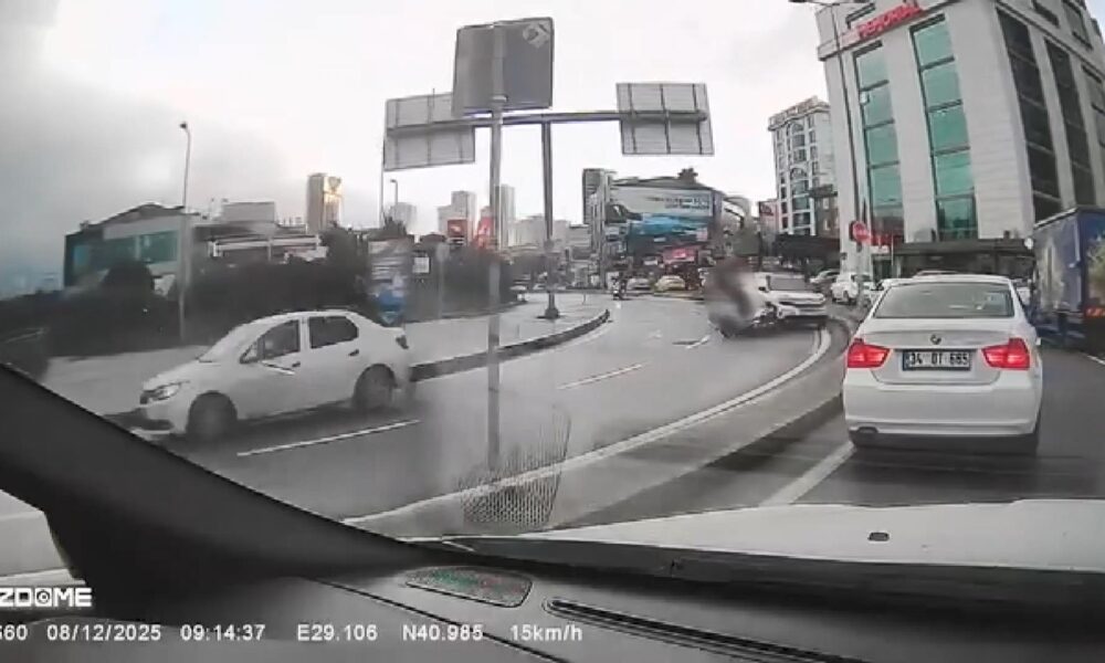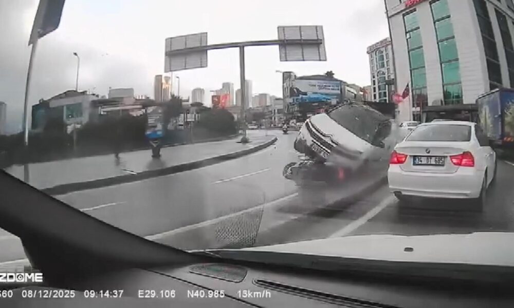 İstanbul – Ataşehir’de motosiklete çarpan otomobil takla attı; ölümden döndü
