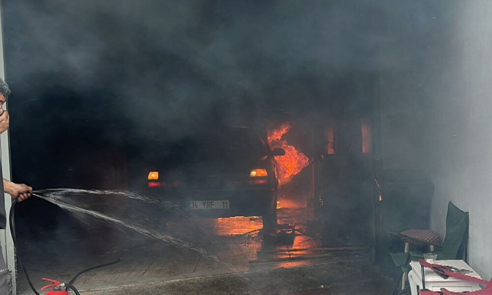 İstanbul- Ataşehir’de tamirhanedeki otomobil alev alev yandı