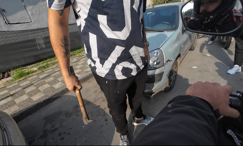 Bu sırada sürücü, motokurye Yaşar D.nin üzerine yürüyerek Harbi dayak yiyeceksin, Kafanı gözünü kıracağım diyerek tehditte bulundu. Devam eden tartışmada sürücünün yanındaki kişi ise, elindeki keserle araçtan inerek, Senin aklını alırım diye bağırıp motokuryenin üstüne yürüdü. Bu sırada otomobilde bulunan çocuğun gözleri önünde devam eden kavgayı çevredekiler durdurmaya çalıştı. Şüphelinin tehditlerde bulunması sonrası Yaşar D., motosikletiyle olay yerinden uzaklaştı. Yaşananlar kask kamerasına saniye saniye yansıdı. Olayla ilgili Yaşar D.’nin şikayette bulunmadığı öğrenildi.