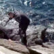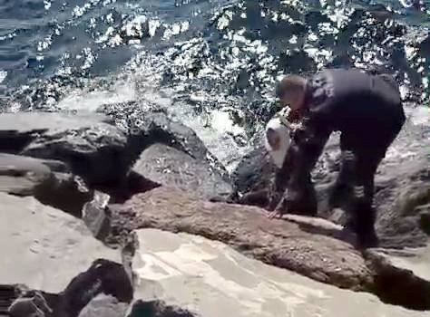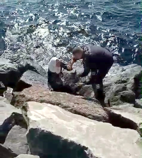 İstanbul – Avcılar sahilinde kayalıkların arasına düşen kadını güvenlik görevlisi kurtardı