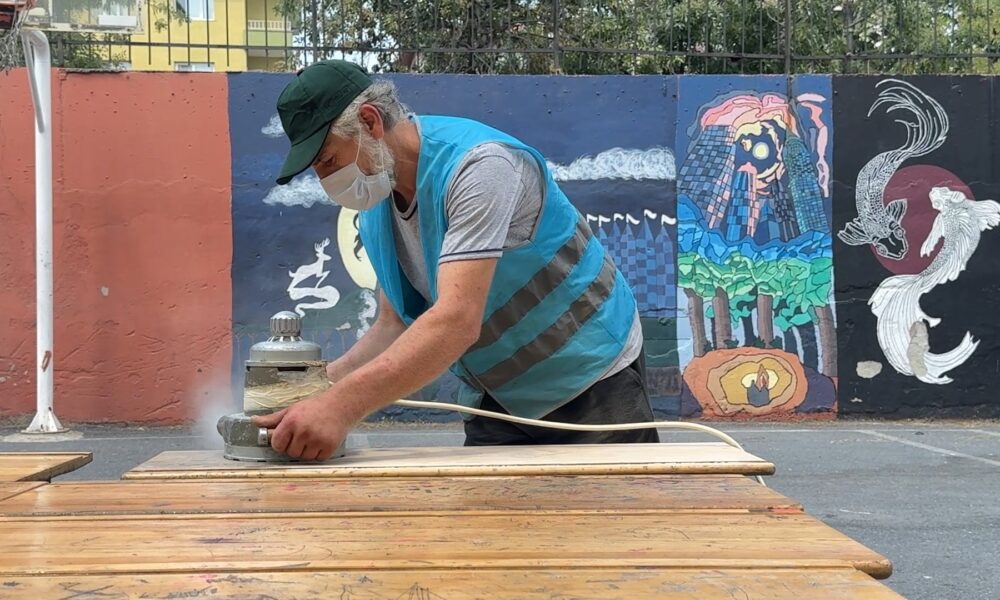Yıpranmış, çizilmiş sıraları zımparalayarak yeniden boyayan Bülent Ural, suç işlemeden önceki mesleğini burada da sürdürdüğünü, bunun inceliklerini diğer yükümlülere de öğrettiğini, bu işi severek yaptığını söyledi. Duvar boyamada görevlendirilen yükümlülerden Erman Deniz Özbudak ise, ellerinden geldiğince okulların yeni ders yılına hazırlanması için çaba harcadıklarını anlattı.