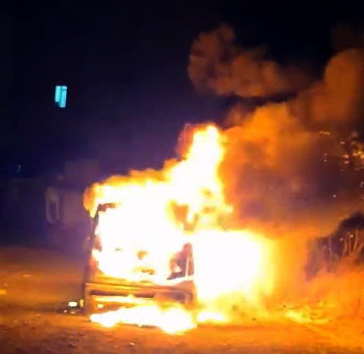 Avcılar'da 18 yaşından küçük H.Ç. amcasına ait hafif ticari aracı ateşe verdi. (Fotoğraf:İSTANBUL-DHA)
