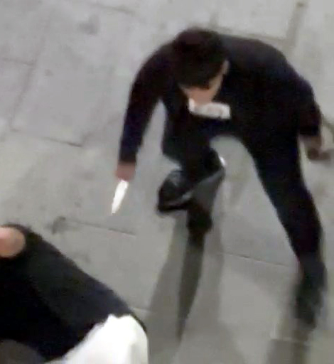 AVCILAR'da bir otomobille caddeye gelen 2 şüpheli, 2 kişiyle kavga etmeye başladı. Bıçak, kemer ve yumrukların kullanıldığı kavgada 2 kişi yaralandı. Kavga anları cep telefonu kamerasıyla görüntülendi. ( FOTOĞRAF: İHSAN DÖRTKARDEŞ / İSTANBUL DHA)