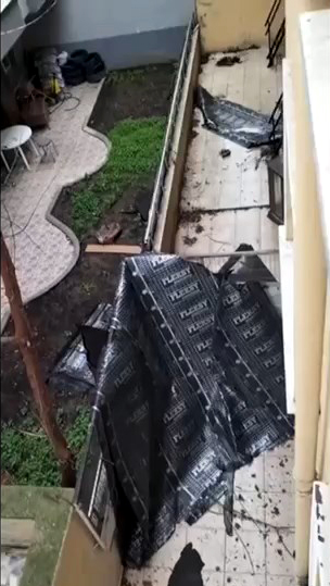 Denizköşkler Mahallesi Doktor Sadık Ahmet Caddesinde ise bir binanın dış cephe kaplamalarının bir bölümü fırtınanın etkisiyle yola düştü. Olayın ardından yaşananlar çevredeki kişiler tarafından cep telefonu ile kaydedildi.