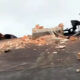BAŞKA BİR BİNANIN ÇATISINDAN KOPAN PARÇALAR YOLA DÜŞTÜ