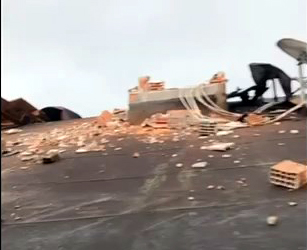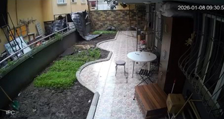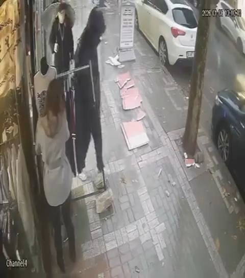 Yaşananlar çevredeki bir iş yerinin güvenlik kamerasıyla kaydedildi. Görüntülerde, 4 katlı binanın çatısından parçaların kopması ve bu sırada elbise mağazasındaki kıyafetleri kontrol eden görevlinin son anda kurtulduğu anlar yer aldı.