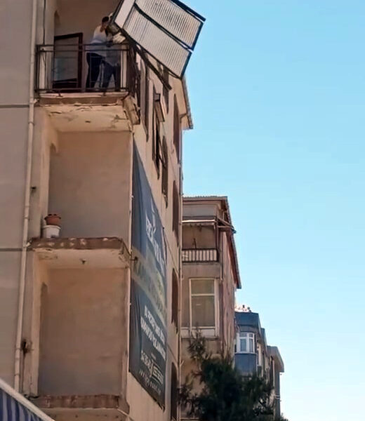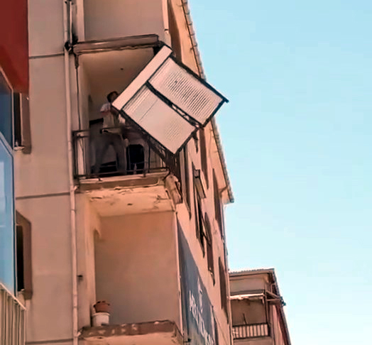 Olay, bugün öğle saatlerinde Merkez Mahallesi Talimhane Caddesinde meydana geldi. Kentsel dönüşüm kapsamına alınan 4 katlı binanın yıkımı için anlaşılan firmanın çalışanları, geri dönüşüm için kullanılacak panjurları sökmeye başladı. Çalışmalar sırasında önlem almayan işçiler, binanın üçüncü katındaki daireden söktükleri panjurları sokağa attı. Yoldan geçen bir kişinin cep telefonu kamerasıyla kaydederek sosyal medyada paylaşması üzerine bölgeye sevk edilen belediye ekipleri yıkım firmasına 15 bin lira ceza yazdı.