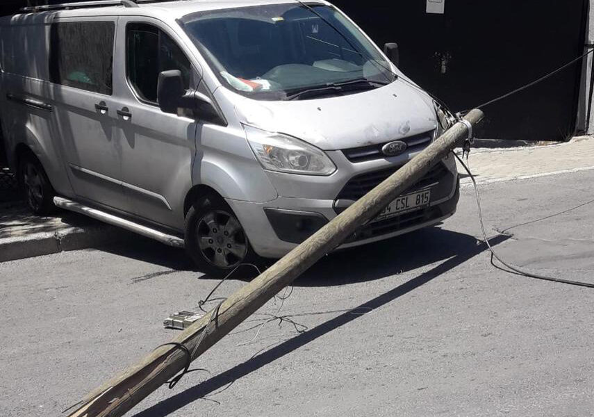 Avcılar’da geri kayan minibüs restoranın kapısına çarparak durdu