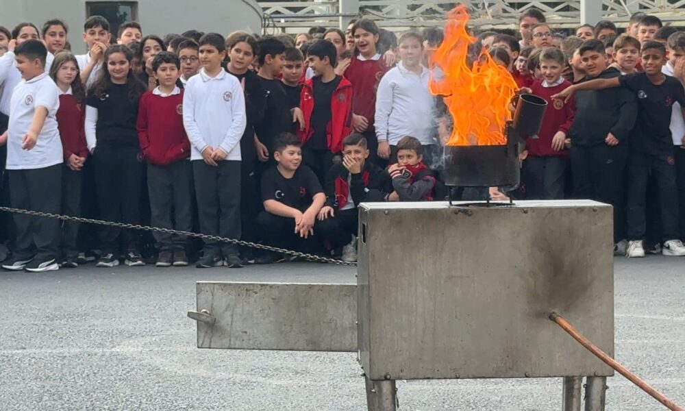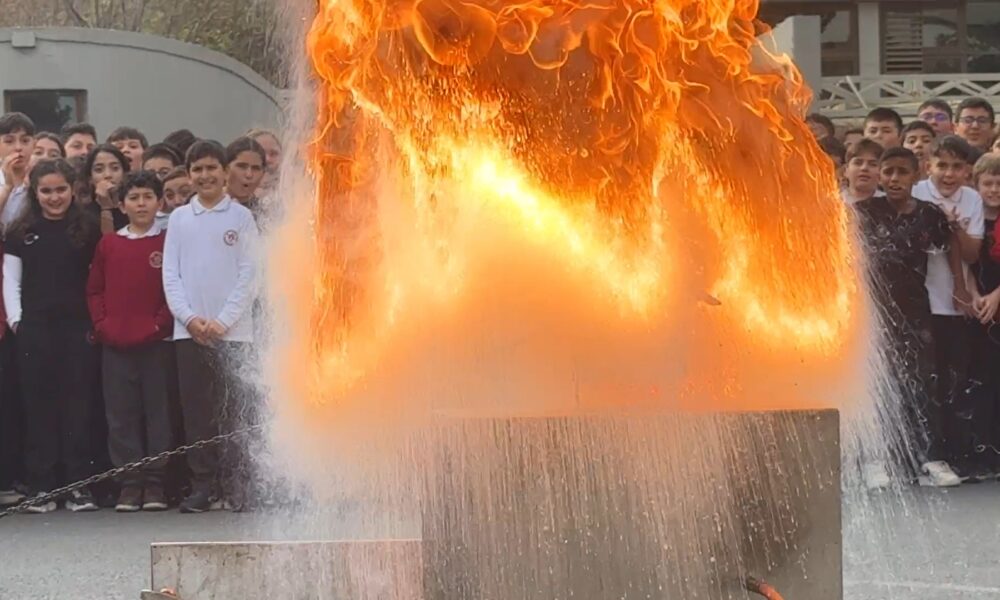 Okul bahçesinde kızgın yağın kontrollü yakılmasının ardından alevlere su ile müdahale edilmesi durumunda oluşacak olan parlama ve patlamalar uygulamalı olarak gösterildi. Eğitimi dikkatle izleyen öğrencilerden bu tür durumlarda tava ve tencerenin ıslak bezle örtülerek hava ile bağlantısını kesmeleri istendi.