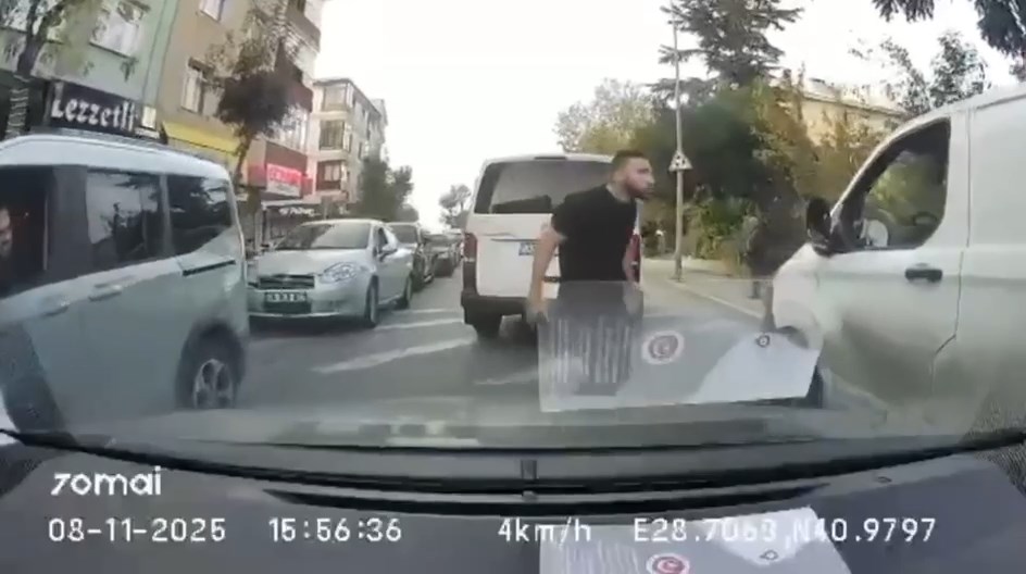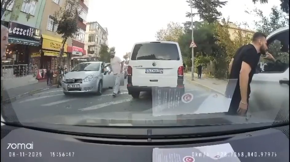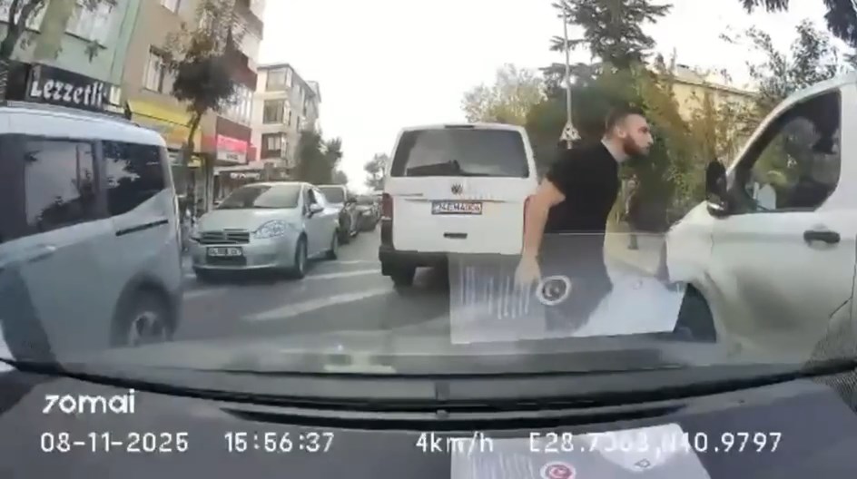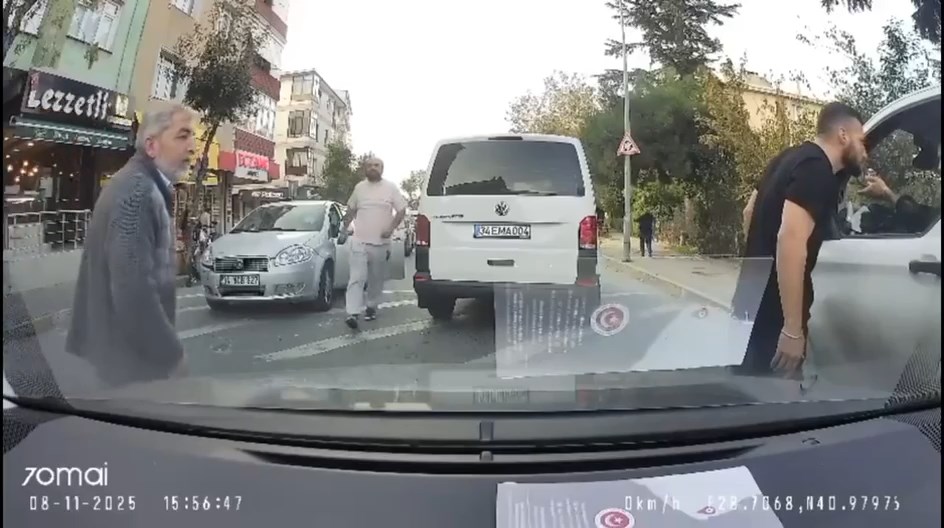 Olay, 8 Kasım günü saat 15.55 sıralarında Ambarlı Mahallesi Tarla Sokak’ta meydana geldi. Edinilen bilgiye göre, iki aracın karıştığı hasarlı kazanın ardından sürücüler, kaza tespit tutanağı hazırlamak için araçlarından inerek fotoğraf çekmeye başladı. İşlemin uzun sürmesi nedeniyle sokakta trafik yoğunluğu oluştu. Beklemek istemeyen bazı sürücüler, korna çalarak tepki gösterdi. Fotoğraf çekimini tamamlayarak aracını yol kenarına çeken sürücünün önüne, başka bir sürücü aracını keserek geçti. Aracından inen sürücü, “Dikiz aynasından neden yan yan bakıyorsun?” diyerek tepki gösterdi. Yaşanan gerginlik çevredekilerin araya girmesiyle kavgaya dönüşmeden sona erdi. O anlar araç kamerasına yansıdı.