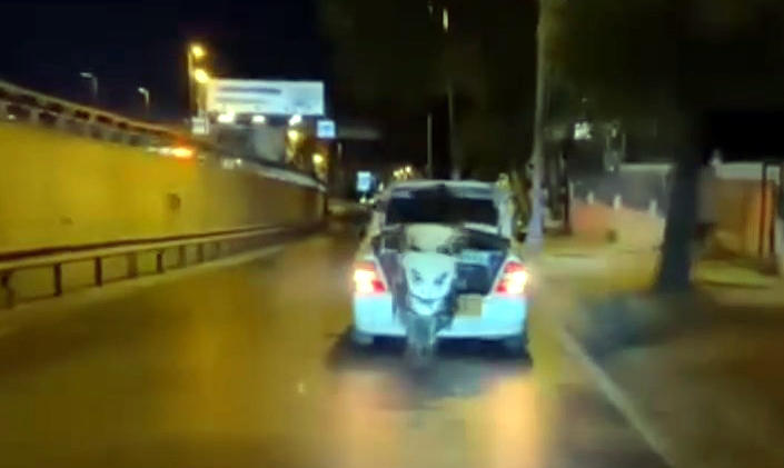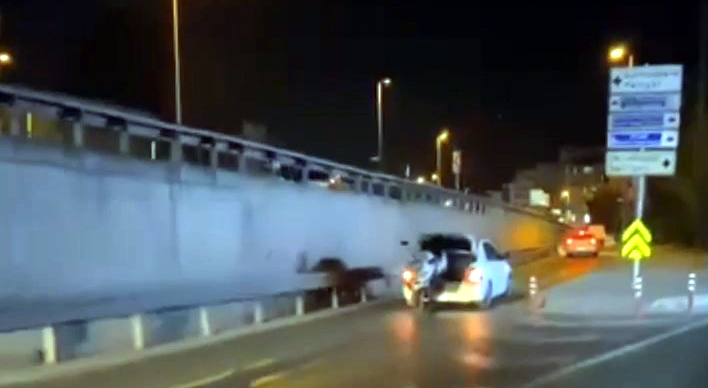 Olay, dün gece saatlerinde D-100 Karayolunun Denizköşkler Mahallesi mevkisindeki yan yolda meydana geldi. İddiaya göre, motosikleti arızalandığı için yolda kalan sürücü, arkadaşından yardım istedi. Olay yerine gelen arkadaşı, motosikleti otomobiline yerleştirmeye çalıştı ancak motosiklet araca sığmadı. Bunun üzerine motosikletin arka lastiği otomobilin bagajına yerleştirilerek sabitlendi. Ön lastik ve gidon ise dışarıda kaldı. Motosikletin ön bölümü yolda sürüklenirken, otomobil bu şekilde D-100 yan yolda ilerlemeye devam etti. Trafikte tehlikeye yol açan bu taşıma yöntemi, yoldan geçen başka sürücü tarafından cep telefonu kamerasıyla kaydedildi.