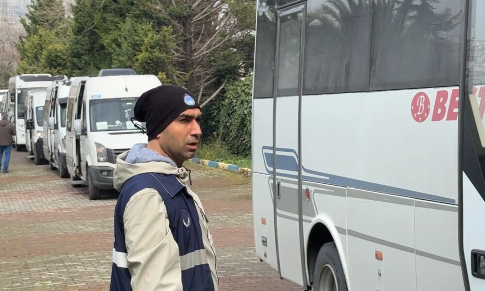 Servis şoförlerinden Göktuğ Eren ise, “Yılda 2 kez bu denetim yapılıyor. Araçların kapı sensörleri, yangın tüpleri, ilk yardım çantaları onları denetliyorlar. Sıkıntımız yok yarım saat içinde girip çıkıyoruz” dedi.