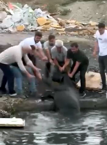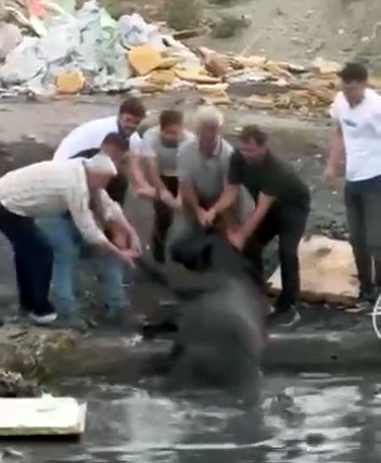 • Avcılar'daki Yeşilkent Mahallesi'nde çıkan yangından etkilenmemesi için gölete sokulan inek çevredekiler tarafından saplandığı çamurdan çekilerek kurtarıldı. (Fotoğraf:İSTANBUL-DHA)