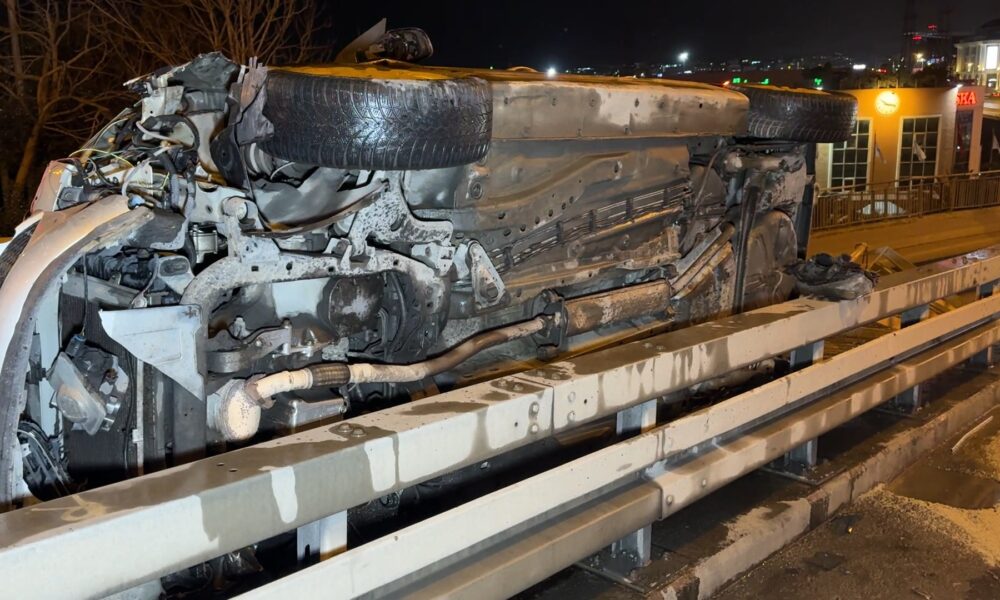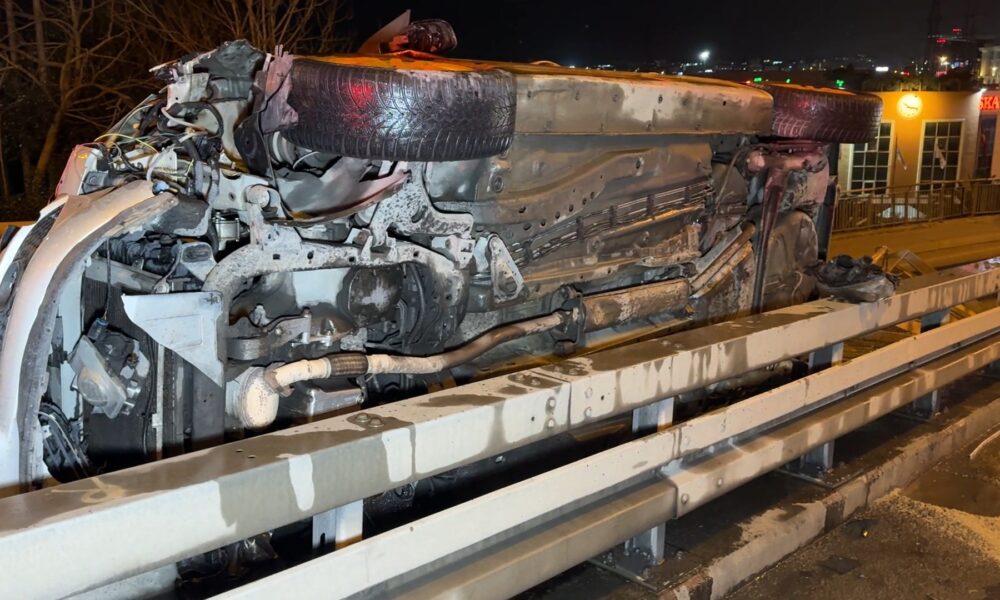 Hafif ticari aracın sürücüsü Refik Erol, “Otomobil süratli bir şekilde gelirken yandan bir taksi sıkıştırdı. Çarpmamak için direksiyonu kırarken bize sağ köşeden çarptı, bariyerlere düştü. Bizim arabada yaralı yok, içinde 5 kişi vardı” dedi.