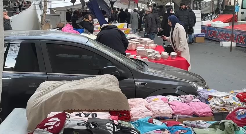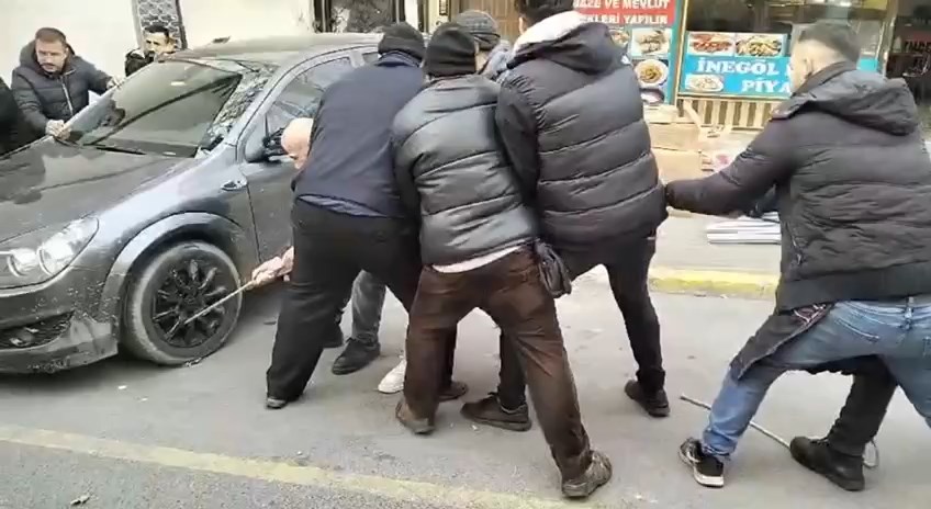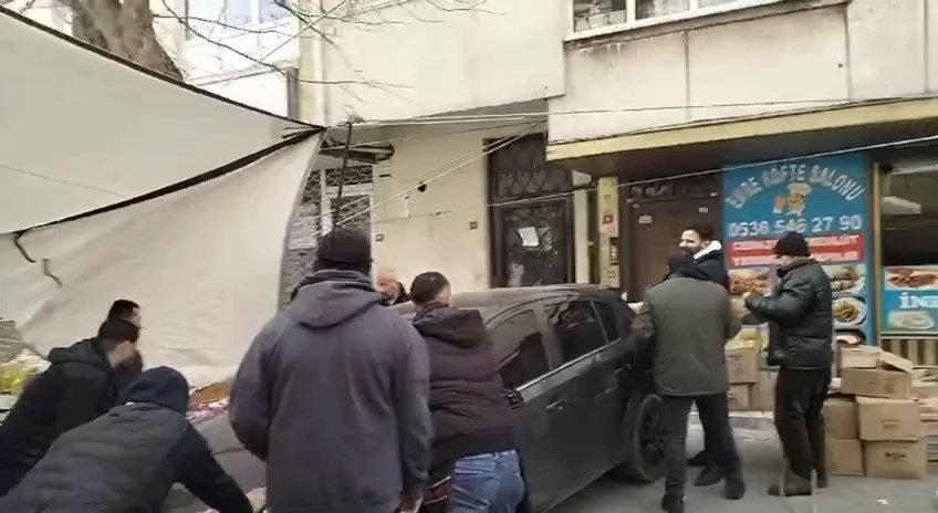 Avcılar’da pazar yerinde unutulan otomobili hep birlikte çektiler