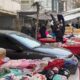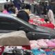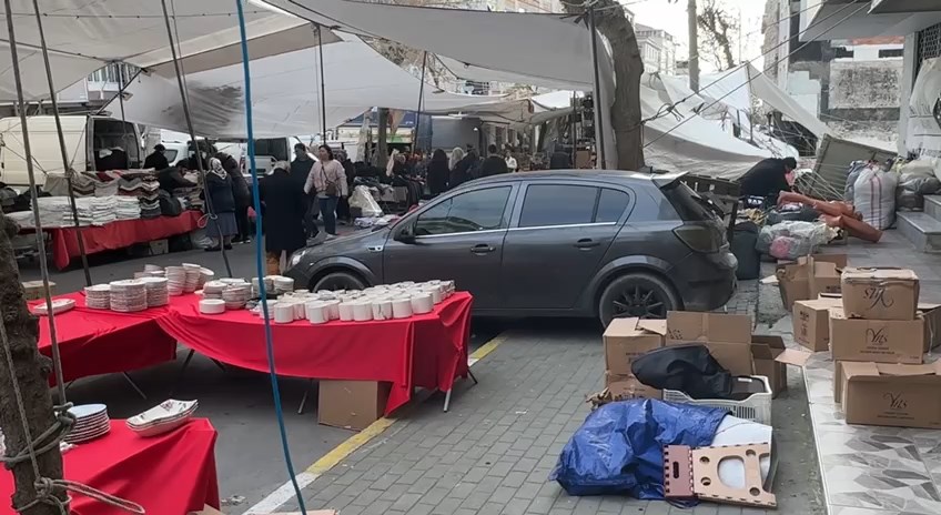 Avcıyar'da semt pazarında bir pazarcının yerinde park edilen otomobilin sahibine ulaşılamadı. Bunun üzerine araç halatla ve el birliği ile kaldırıma çekildi. (Fotoğraf:İhsan DÖRTKARDEŞ/İSTANBUL-DHA)