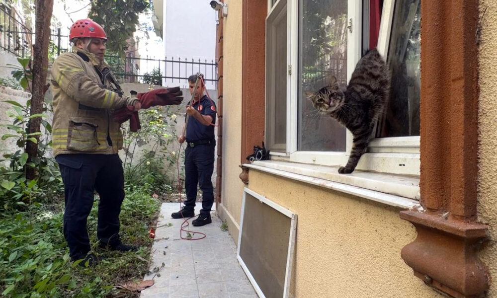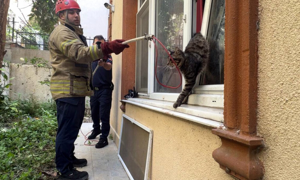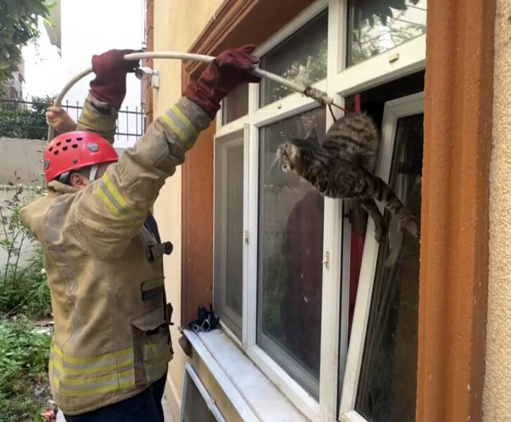 İstanbul – Avcılar’da pencerede sıkışan kediyi itfaiye kurtardı