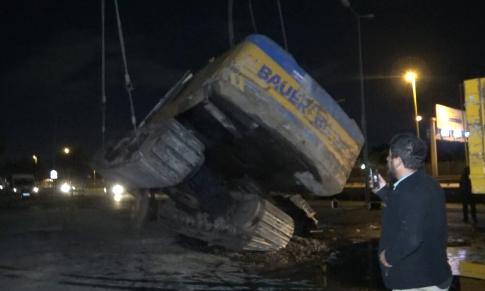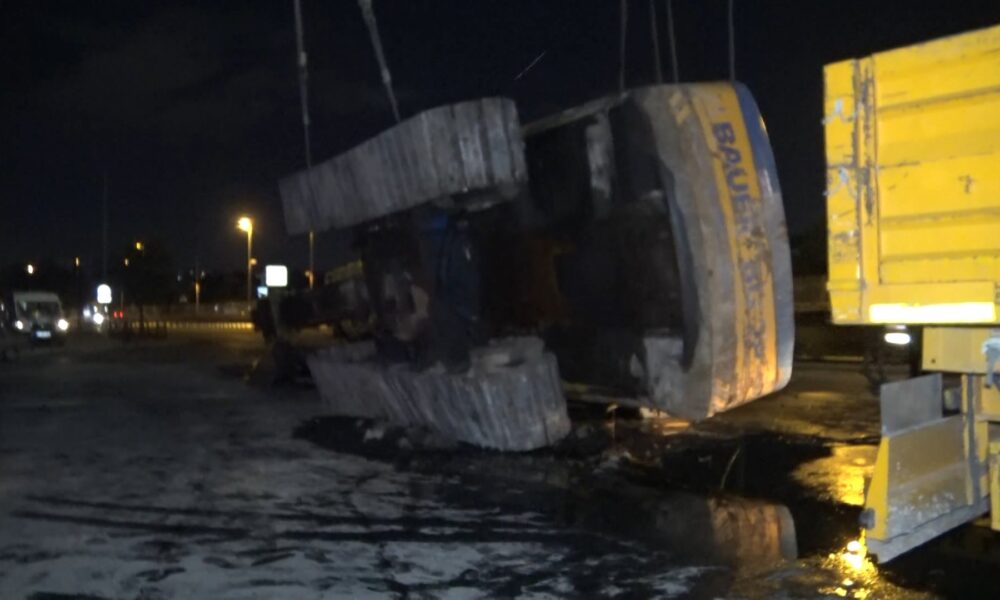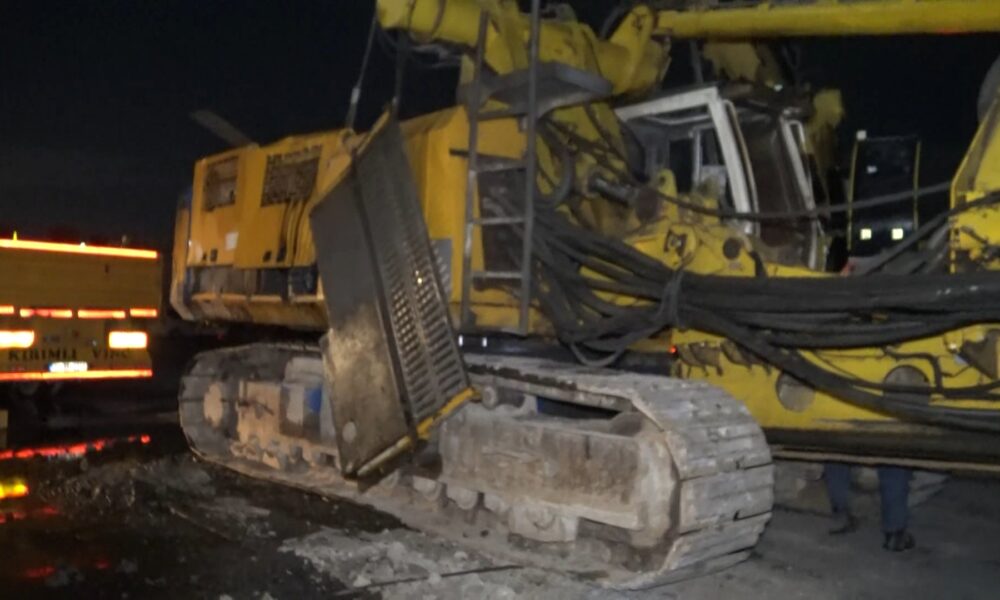 Avcılar’da TIR’a yüklenmek istenen fore kazık makinesi devrildi